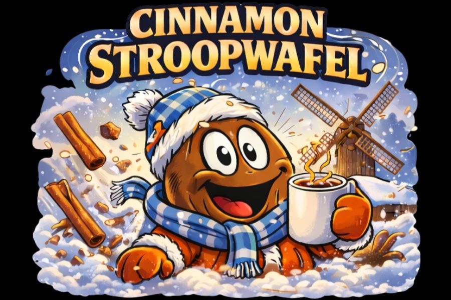 Cinnamon Stroopwafel tastes exactly like it sounds—warm caramelized waffle notes layered with cozy cinnamon spice and syrupy sweetness. Think fresh stroopwafel energy without the crumbs or the airfare.